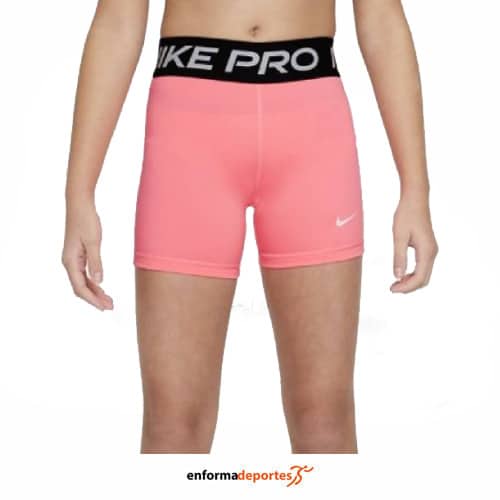 Malla corta junior NIKE PRO, confeccionado en tejido con tecnología Dri-fit, que capilariza el sudor, con diseño ajustado en color negro que se ajusta a la forma anatómica del jugadora, cintura elástica muy suave que ofrece una compresión leve, con zona lateral de malla para una buena transpiración.