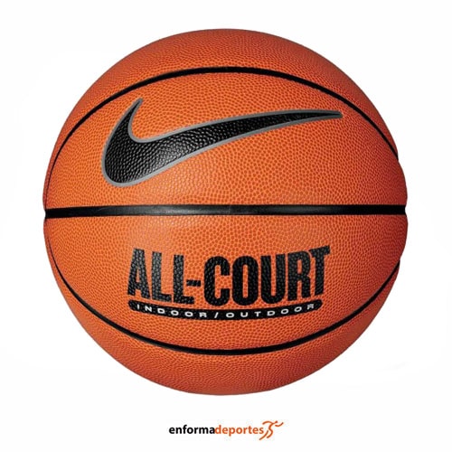 Balón baloncesto NIKE EVERYDAY ALL COURT 8P, con superficie texturizada que proporciona un agarre óptimo, mejorando el control del balón en todo tipo de jugadas, con canales profundos aseguran una distribución uniforme del peso, facilitando un mejor manejo y tiros más precisos, fabricado con una mezcla de 85% caucho y 15% cuero sintético, este balón es resistente al desgaste, ideal para soportar el uso continuo en cualquier superficie y con cámara de butilo interna.