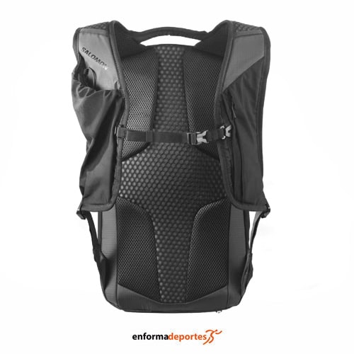 Mochila SALOMON XT 15, con capacidad para 15 litros, compatible con sistema de hidratación con termos blandos de 500ml y con depósito de 2 litros, con gran bolsillo principal con cremallera y gancho para el depósito de hidratación, con cremallera y correa interior para llaves y bolsillos de malla con cremallera en la cintura y bolsillos de malla con cremallera a lo largo de las correas de los hombros, hebillas elásticas en la parte delantera para guardar la chaqueta o los bastones, correas de pecho ajustables para garantizar la estabilidad durante el movimiento, espalda acolchada en malla transpirable, tirantes ajustables y detalles reflectantes. Dimensiones: 50 x 27 x 3 largo x ancho x profundidad en cm.