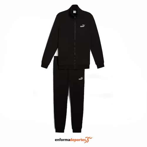 Chandal hombre PUMA ESSENTIALS SWEAT SUIT, confeccionado en tejido algodon y poliester, de ajuste estándar, con cuello alto, manga larga, compuesto de dos partes, chaqueta con cierre con cremallera completa, con bolsillos laterales y puños elásticos; parte inferior pantalón con cintura elástica con cordón y bajos cerrados