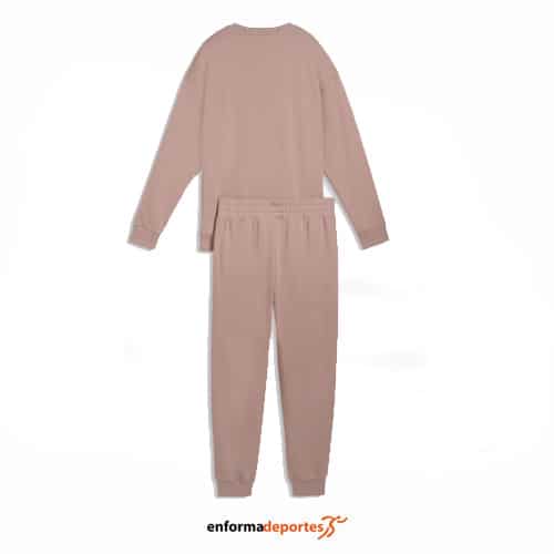 Chandal mujer PUMA RELAXED SWEAT, confeccionado en tejido poliester reciclado felpa francesa, de corte holgado, consta de dos partes, parte superior de manga larga, cuello redondo, bolsillo tipo canguro y cintura y puños elásticos, parte inferior pantalón con cintura elástica y puños elásticos.