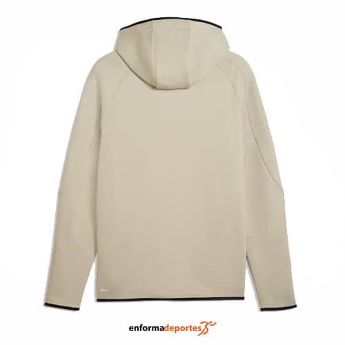 Sudadera hombre PUMA EVOSTRIPE FULLZIP HOODIE, de corte semiajustado, confeccionada en tejido spacer, con capucha fija, de cuello alto, con cordón elástico y topes de goma, manga larga, cierre con cremallera completa, bolsillos tipo canguro, mangas ranglan.