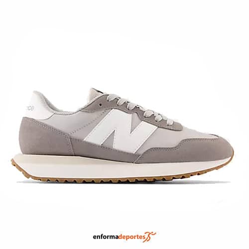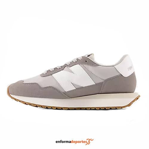 Zapatilla mujer NEW BALANCE 237, confeccionada en su parte superior de malla transpirable y ante, con entresuela de EVA extendida y protecciones, suela en forma ondulada.