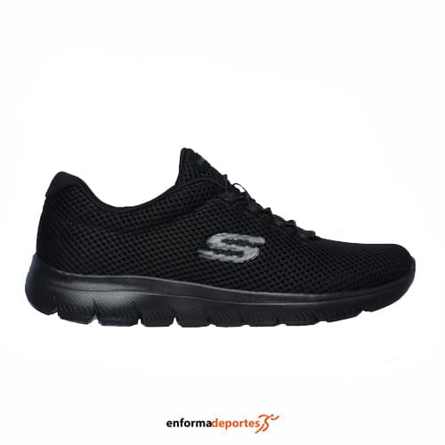 Zapatilla SKECHER SUMMITS, confeccionada con malla, de una sola pieza, cuello y lengüeta acolchados, cierre con cordones elásticos, forro interior de tela, plantilla Memory Foam, media suela flexible y ligera, suela con tracción flexible.