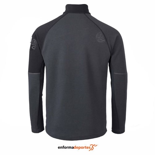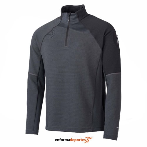 Camiseta hombre TERNUA LEMIK, segunda capa con media cremallera, confeccionada en tejido WARMSHELL poliester reciclado, ligero, cálido, transpirable y de secado rápido, elástica y de patrón atlético que proporciona una excelente libertad de movimientos, con cremallera frontal que ofrece ventilación extra, costuras planas, protector de barbilla para evitar el roce de la cremallera, bolsillo de brazo pegado con cremallera y muy buena resistencia al pilling. También incorpora superficie en 3D optimizando el secado y el aislamiento; con acabado con tratamiento de repelencia al agua (DWR) libre de PFC’s.