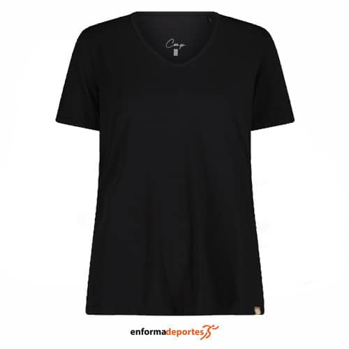 Camiseta mujer CAMPAGNOLO, técnica, confeccionada en tejido de punto de poliéster Lyocell de la línea Leisure, de manga corta, cuello pico.