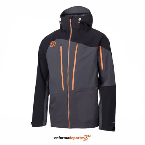 Chaqueta hombre TERNUA KLIMMER, prenda de tres capas altamente técnica, confeccionada con tecnología Shelltech Active Flex, que la hace impermeable, transpirable y muy resistente, patrón preformado y dos tejidos elásticos, uno de ellos en ripstop, proporcionan una gran libertad de movimientos y confort,  costuras termoselladas y cremalleras resistentes al agua, una columna de agua de 20.000 mm y una transpirabilidad MVP de 20.000 g/m²/24h. Su capucha 3D es ajustable, mientras que las cremalleras frontales del pecho ofrecen bolsillos de gran capacidad, cuenta con bolsillos de manos amplios para un mejor almacenamiento y ventilaciones ajustables con doble carro en las axilas, con cremallera frontal de doble carro facilita el uso con arnés, e incluye un bolsillo interior pegado con cremallera, con bajo ajustable con doble tanca y los puños cuentan con ajuste de velcro. Incorpora un protector de barbilla para evitar el roce con la cremallera y un tratamiento repelente al agua libre de PFC’s.