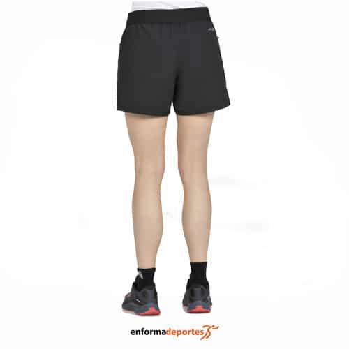 Pantalón corto mujer +8000 SUNI, confeccionado en tejido elástico que garantiza comodidad y libertad de movimiento, con bolsillos laterales con cremallera para un almacenamiento seguro y cintura elástica con cierre de corchetes y bragueta, que ofrece un ajuste práctico y confortable.