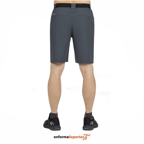 Pantalón corto hombre +8000 KIN, confeccionado en tejido Nylon active stretch 4 way, diseñado para un uso activo, con bolsillos laterales con cremallera, con perforación láser en la parte posterior para mejorar la ventilación y favorecer la transpirabilidad durante la actividad, con cintura elástica para un ajuste cómodo y presenta un corte slim fit que aporta un estilo moderno y funcional.