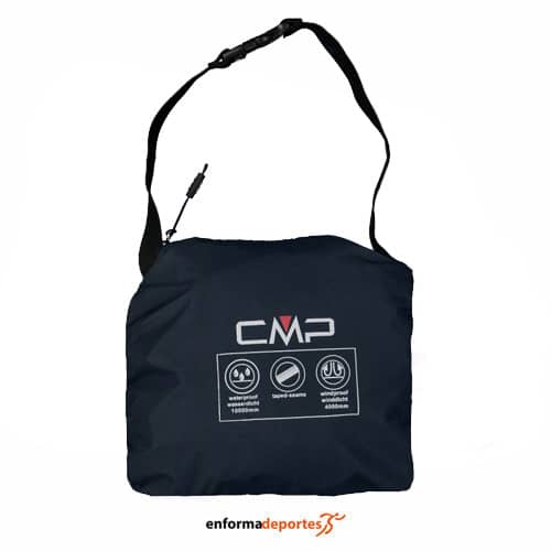 Pantalón hombre CMP RAIN, confeccionado en tejido Ripstop cortaviento, impermeable y transpirable con costuras totalmente selladas para una protección total contra la humedad, con forro de malla favorece una mejor evaporación (Impermeabilidad 10.000, MVP 4.000).  Con 2 bolsillos laterales, 1 bolsillo en el pecho con cremallera, completamente plegable en el bolsillo lateral, con abertura lateral completa con cremallera impermeable, cintura elástica y dobladillo ajustable con velcro.
