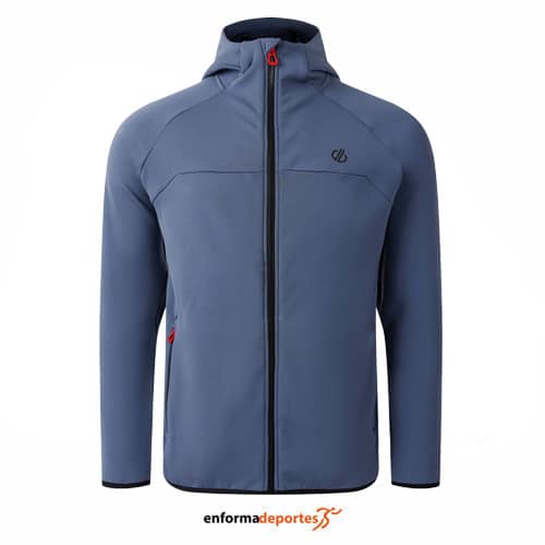 Softshell hombre DARE2B CAMBER II CORE STRECH, confeccionado en tejido elástico de peso pesado premium con núcleo reciclado, de 240g/m², con protección UV (UPF) de 50+, con tratamiento antibacteriano de control de olores sin químicos sintéticos en la fabricación elástica del núcleo, con cierre con cremallera frontal central con protector de barbilla interior, 2 bolsillos inferiores con cremallera y ribete elástico en puños y dobladillo.