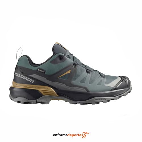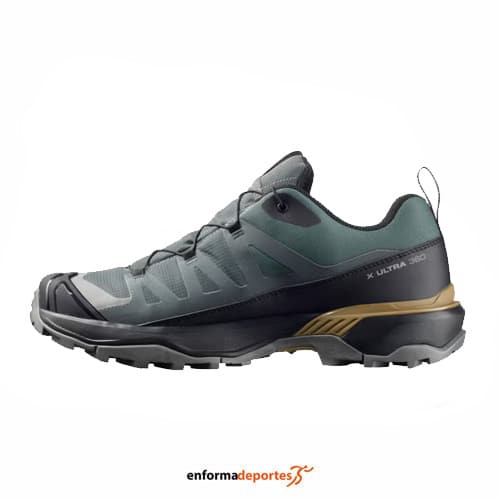 Zapatilla hombre Salomon X Ultra 360 Gtx, fabricada en su parte superior de material sintético, con pala sintética que garantiza gran resistencia y protección para las actividades al aire libre, con puntera protectora, con sistema de cierre con cordones quickLACE™, resistentes y minimalistas, con bolsillo para cordones; con sistema advanced Chassis™, inserto moldeado integrado en la suela que ofrece una sujeción lateral potente y una protección segura, con plantilla forro interior de OrthoLite® moldeada que se adapta al contorno del pie, y ofrece una amortiguación, transpirabilidad y durabilidad, con entresuela EnergyCell, espuma de EVA de alto rendimiento que amortigua los impactos y suela All Terrain contaGRIP®, que ofrece durabilidad y confianza sobre superficies húmedas, secas, duras o resbaladizas; con pala soldada sin costuras, con tecnología SensiFit™ que proporciona un ajuste seguro, cómodo y protección antibarro que es una envoltura de piel, material sintético o goma alrededor de la planta del pie que protege los laterales y los mediales del pie.