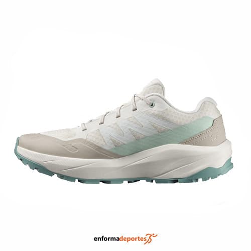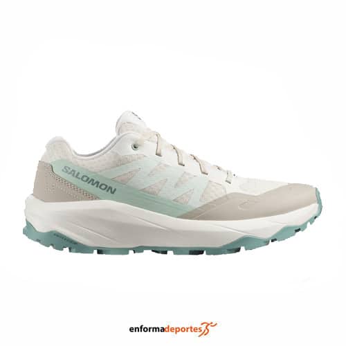 Zapatilla mujer SALOMON OUTSCAPE, fabricada en su parte superior de material sintético con refuerzos en puntera y talón, con cierre con cordones, con entresuela acolchada Fuze Foam proporciona una comodidad, combinada con la suela Contagrip® todoterreno, se adapta a todo tipo de terreno.