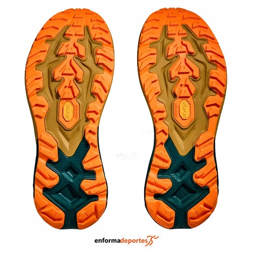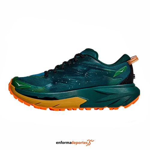 Zapatilla hombre HOKA MAFATE 5, fabricadas en su parte superior con upper técnico y resistente, con empeine elástico con tratamiento antidesgaste que garantiza durabilidad y ajuste, con entresuela de doble densidad con capa superior de espuma que proporciona suavidad y absorción de impactos, con suela Vibram® Megagrip y tecnología Rocker Integrity, proporcionan tracción, estabilidad y suavidad en cada paso, con tacos de longitud de 5mm, en cualquier tipo de superficie.